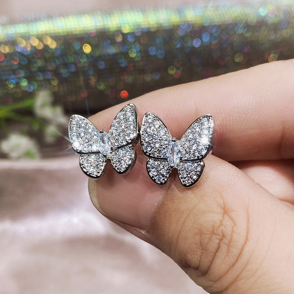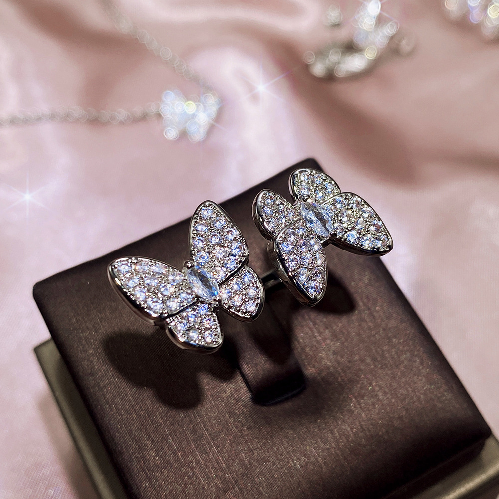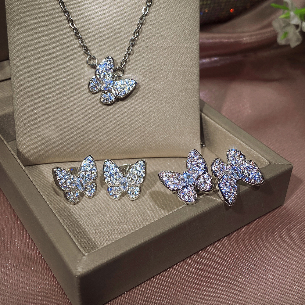 2021 live hot selling style butterfly zircon celebrity three-piece jewelry set spot direct sales