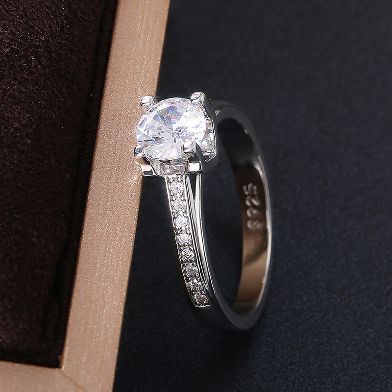 Micro-inlaid celebrity style classic all-match popular ring six-claw zircon wedding ring European and American style light luxury ring