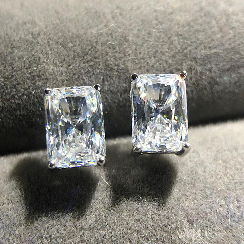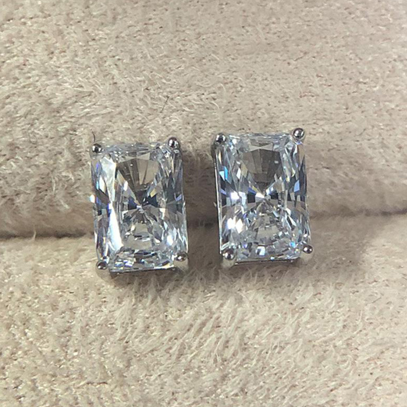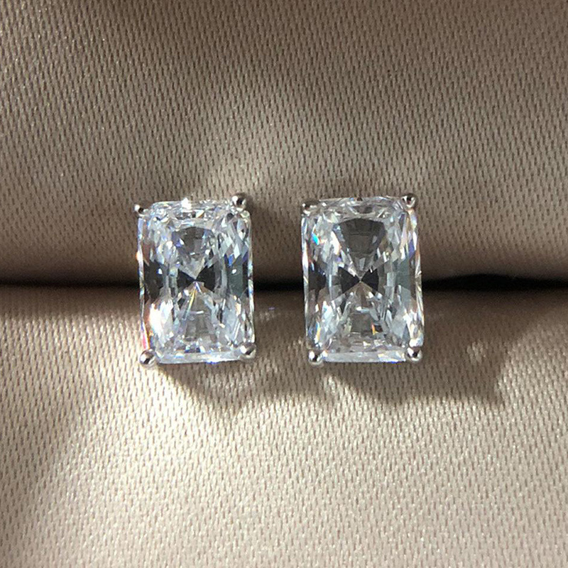 2021 new earrings classic four-claw square diamond zircon earrings copper plated white gold simple earrings