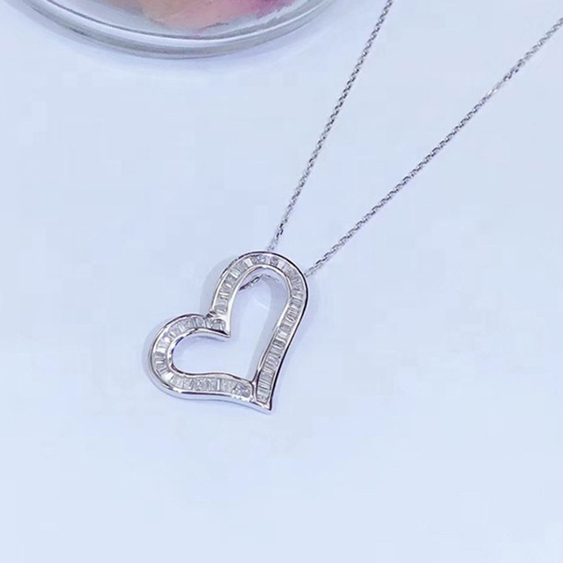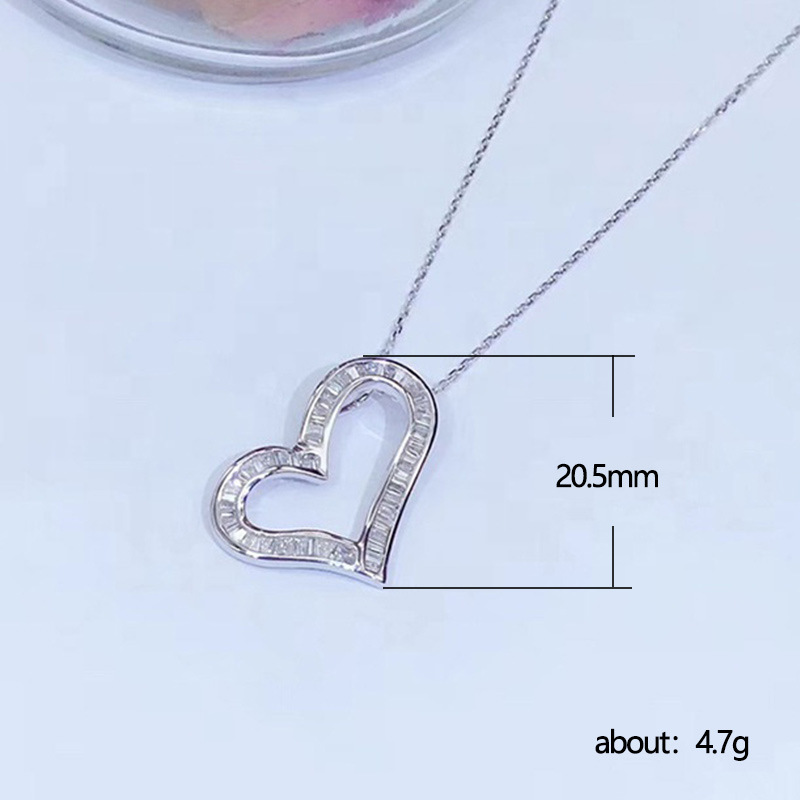 2021 New Product Recommendation Fashionable and Versatile Commuter Ladder Square T Zircon Necklace Full Diamond Heart-Shaped Zircon Necklace