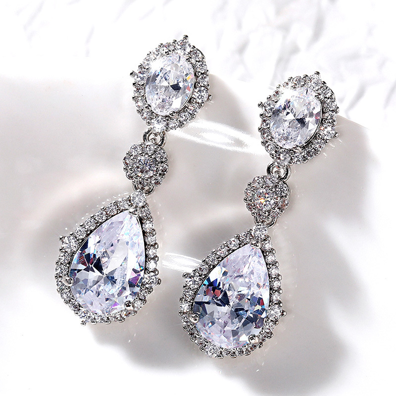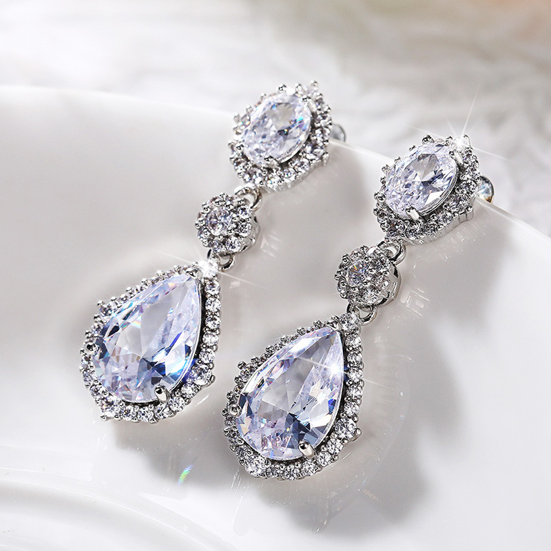 2021 New Temperament Earrings Korean Fashion Versatile Water Drop Zircon Earrings Women's Anniversary Celebration Jewelry