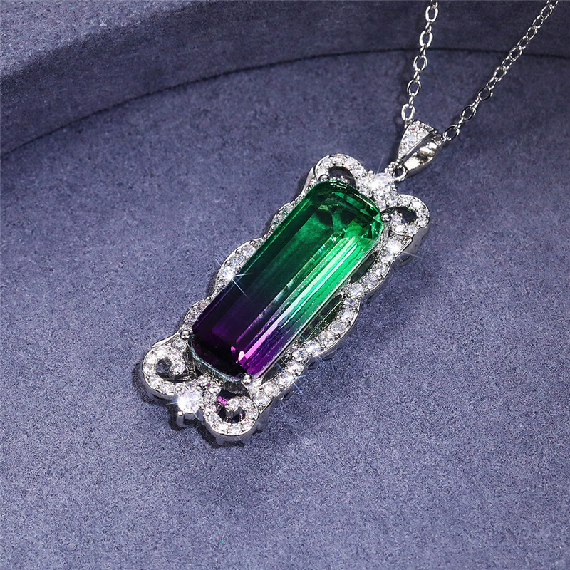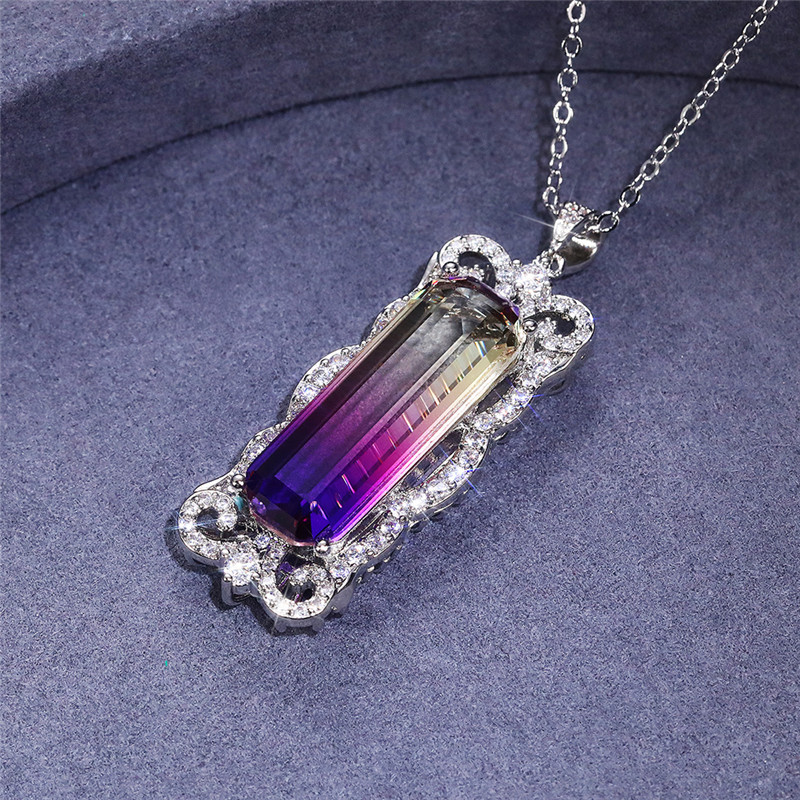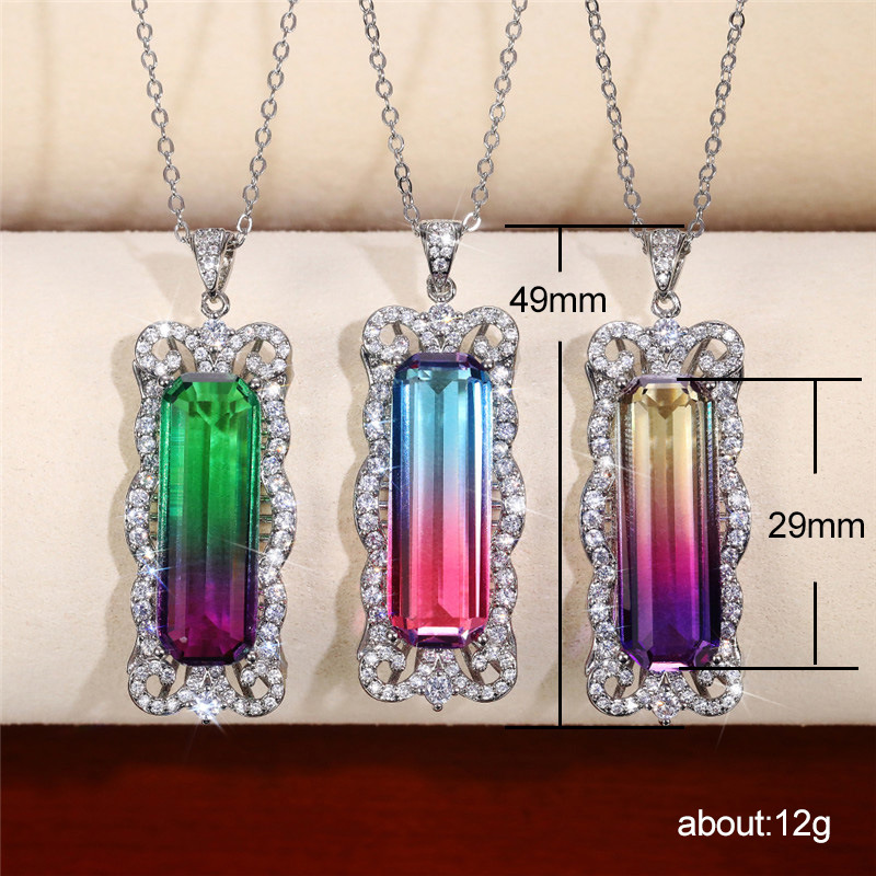 2022 Fashionable New Gradient Color Imitation Gemstone Pendant Necklace Inlaid with Zircon Necklace Party Jewelry