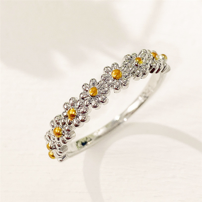 2022 Japanese and Korean style hand jewelry sweet small daisy flower ring female summer two-color flower ring wholesale