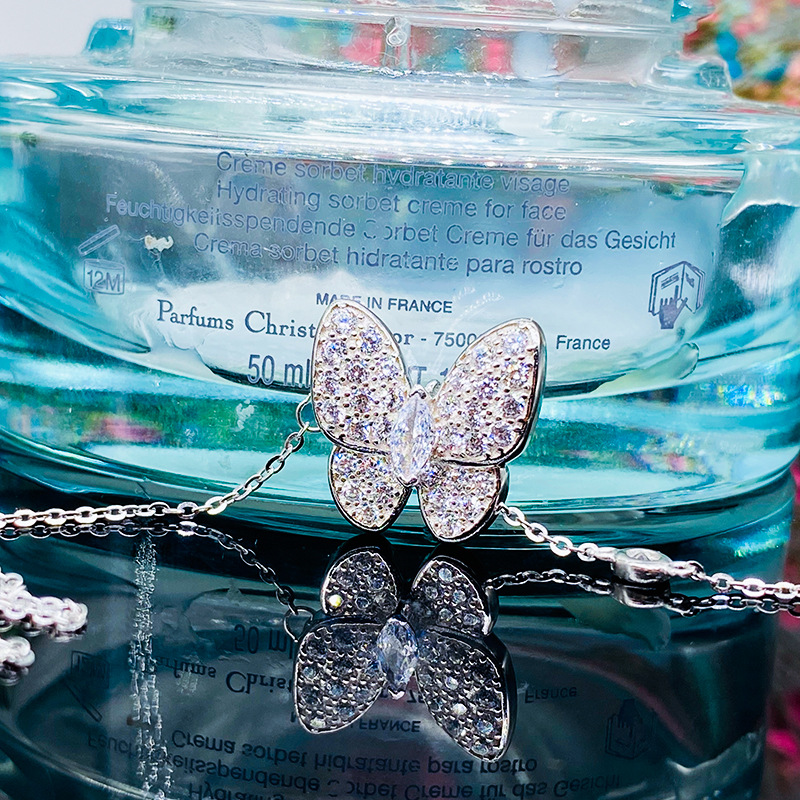 2022 Live Hot Sale Style Sweet Butterfly Zircon Pendant Necklace Women's Supply Spot Direct Sales