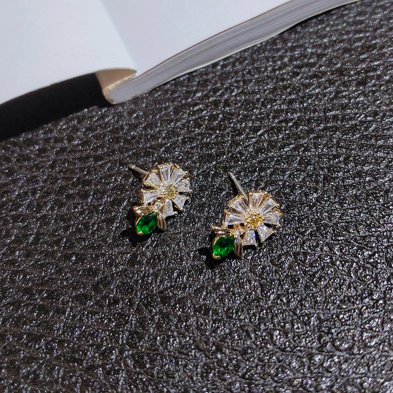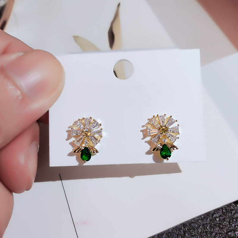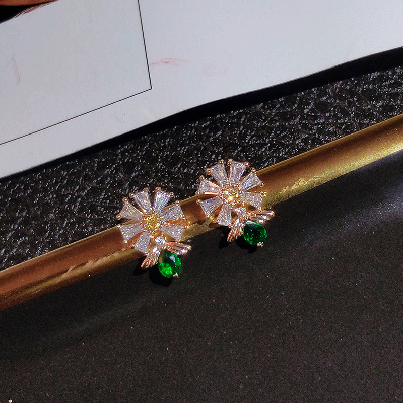 2022 new style small daisy temperament earrings high-end green zircon earrings simple cold style earrings