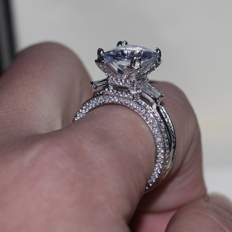 Micro-inlaid celebrity style classic all-match popular ring six-claw zircon wedding ring European and American style light luxury ring