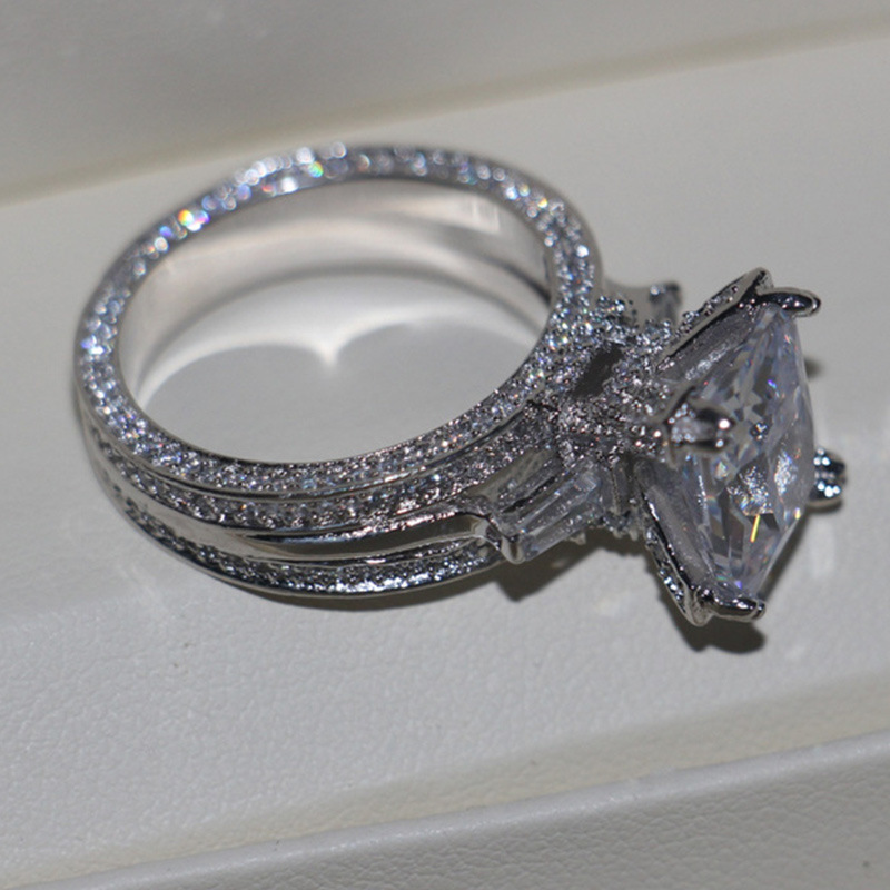 Hot selling new princess square ring European and American hot style inlaid zircon women's jewelry engagement proposal ring