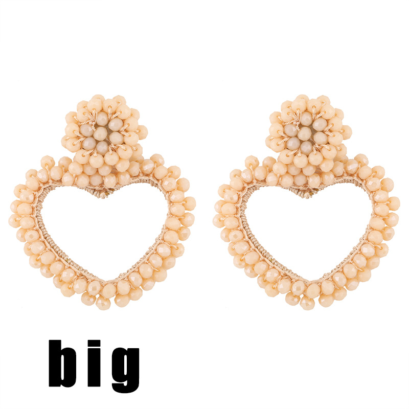 2023 autumn and winter new fashion heart-shaped earrings hand-woven rice beads peach heart earrings ear jewelry erv15