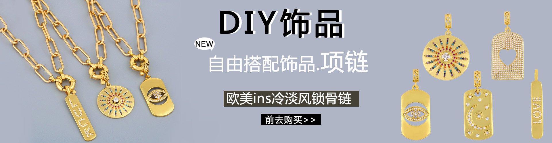 European and American hot-selling jewelry 26 English letters pendant necklace hip-hop smooth gold-plated clavicle chain nkp13