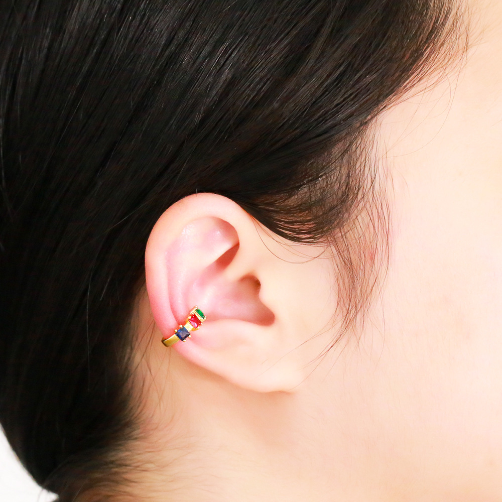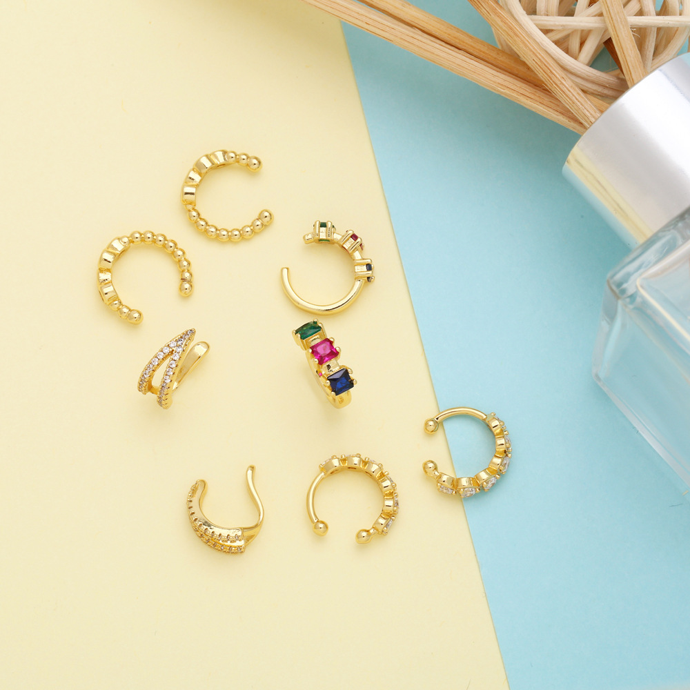 European and American simple fashion color zircon earrings niche design ear clip 18k gold plated earrings eru52