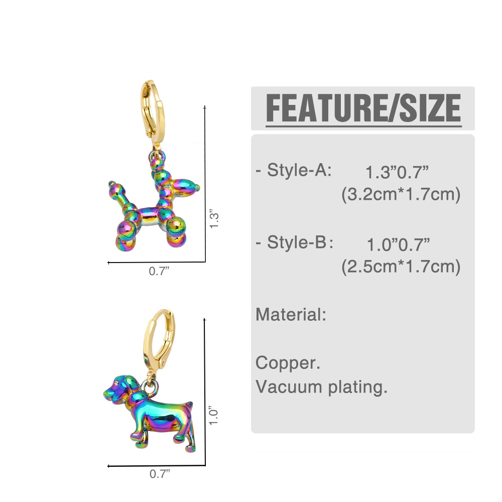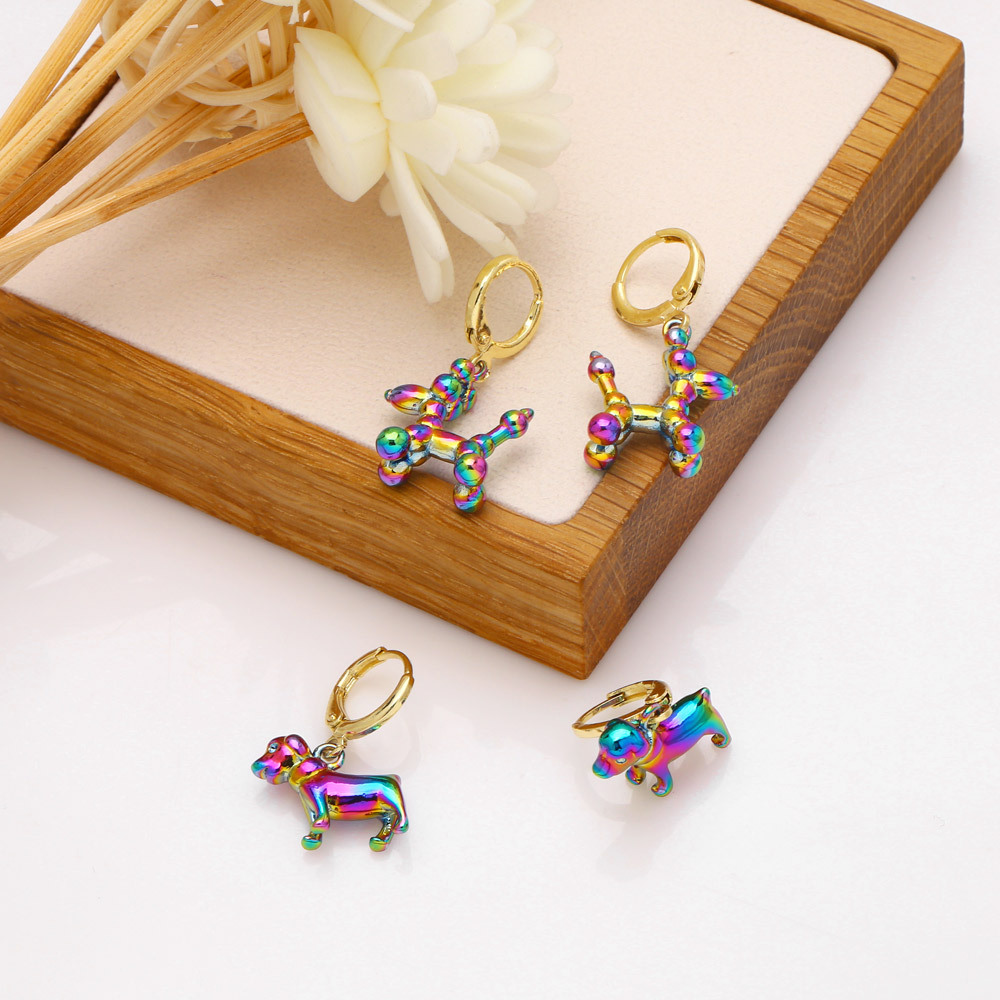 2023 new colorful balloon dog earrings earrings female European and American personality hip-hop metal style animal earrings era042