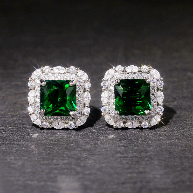2023 new earrings retro emerald square earrings INS hot selling earrings European and American earrings