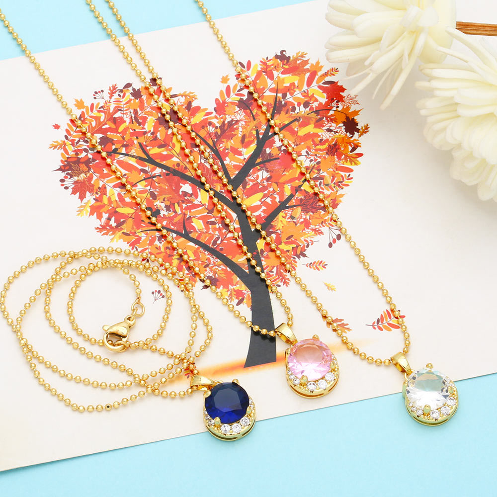 2023 new European and American niche high-end round zircon necklace female fashion colorful zircon pendant nkb546