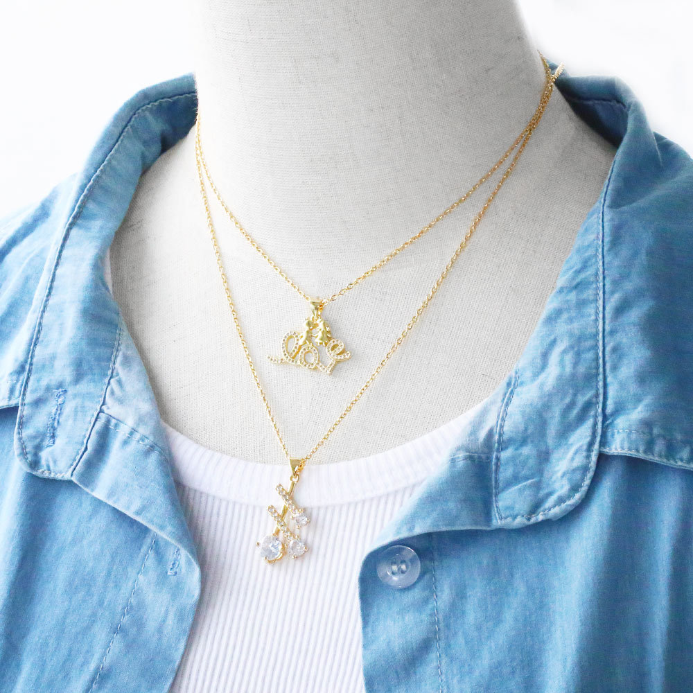 Letter necklace European and American new color zircon necklace with diamond surname English AZ letter necklace nkp25