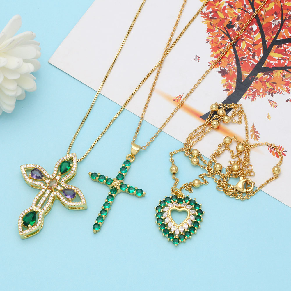 2023 new niche design high-end emerald cross zircon necklace clavicle chain wholesale nkb302