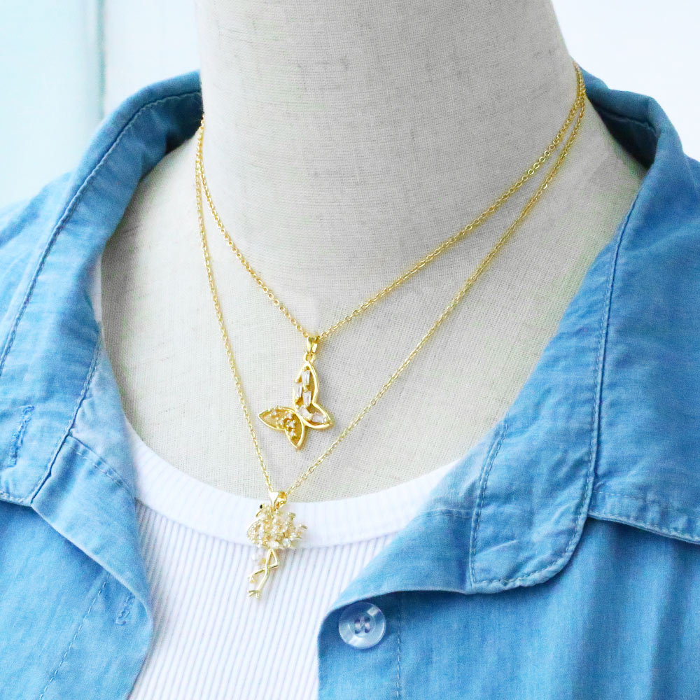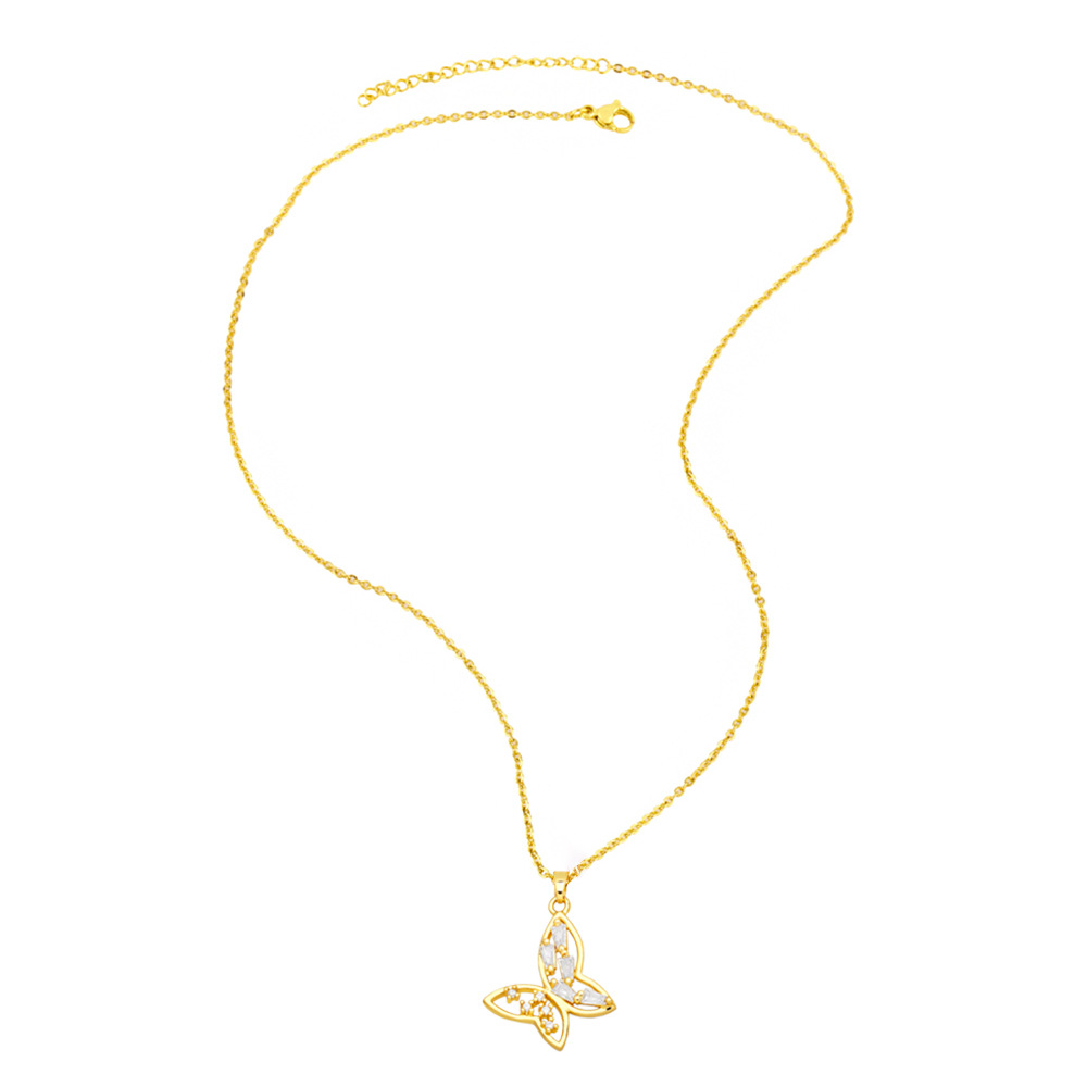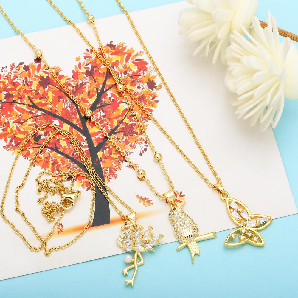 2023 Spring and Summer New Jewelry Fashion Simple Inlaid Zircon Flamingo Butterfly Pendant Necklace Women nkb737