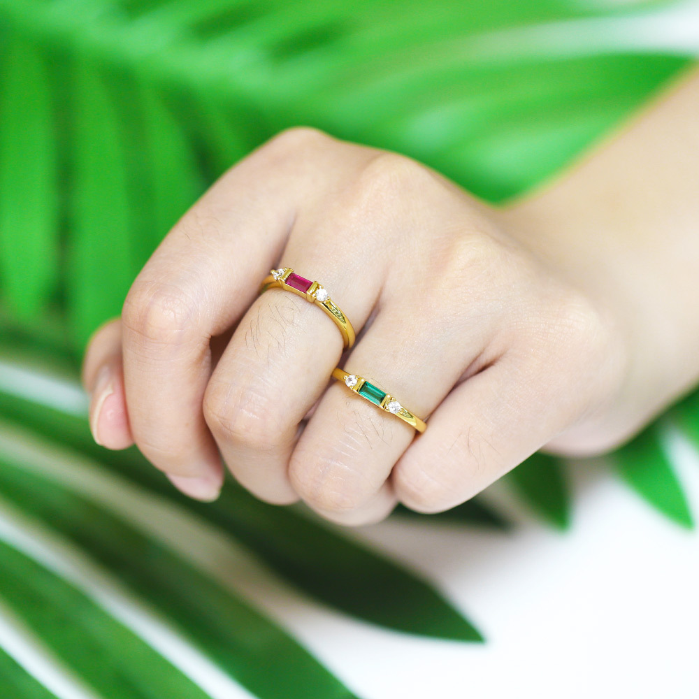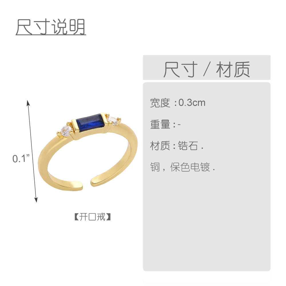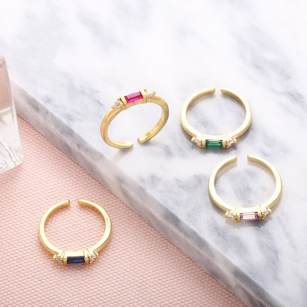 2023 Spring New European and American Simple Light Luxury Cold Style Inlaid Colored Zircon Geometric Open Ring rin74