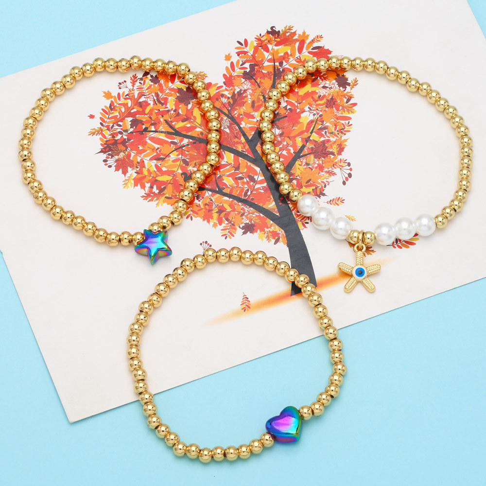 2023 summer new gold round beaded colorful love five-pointed star bracelet female European and American hand jewelry brh49