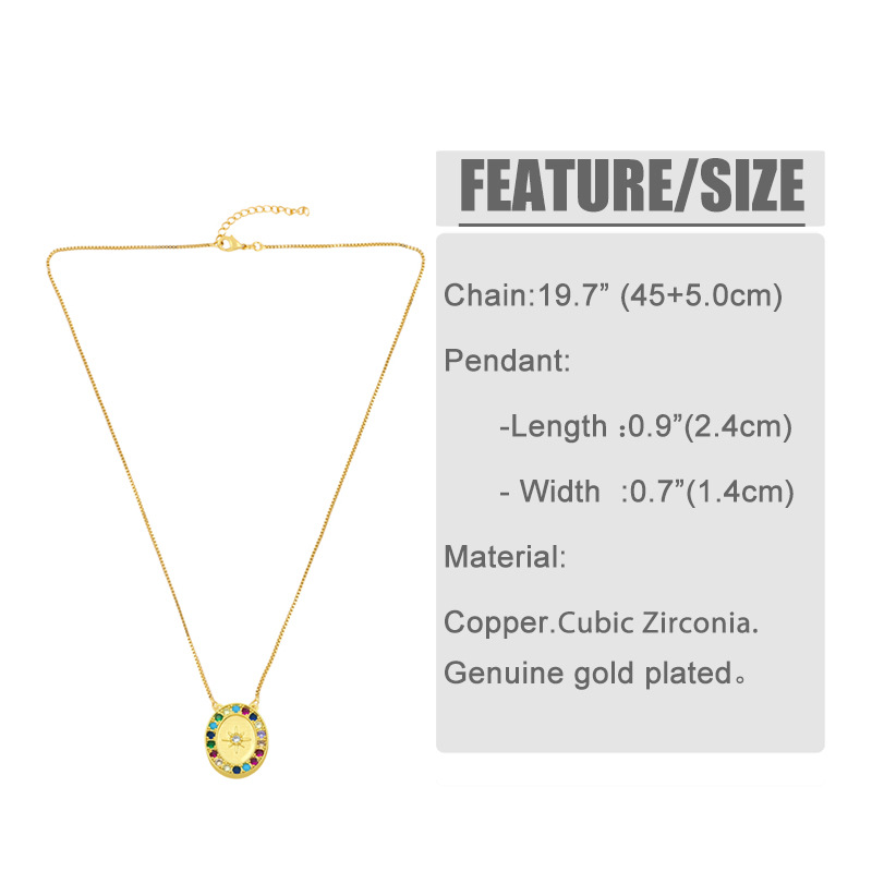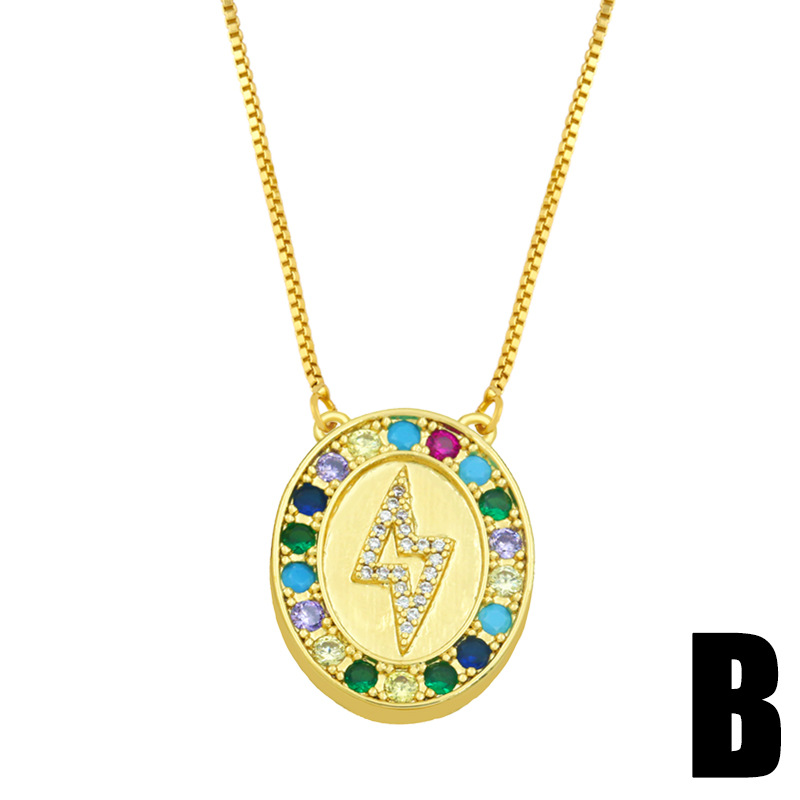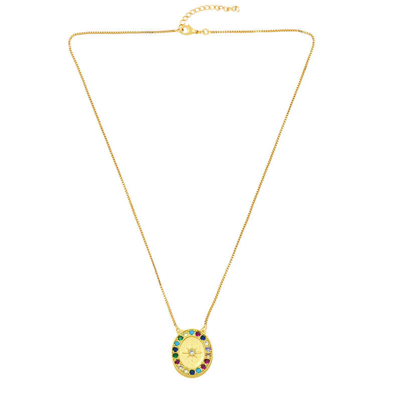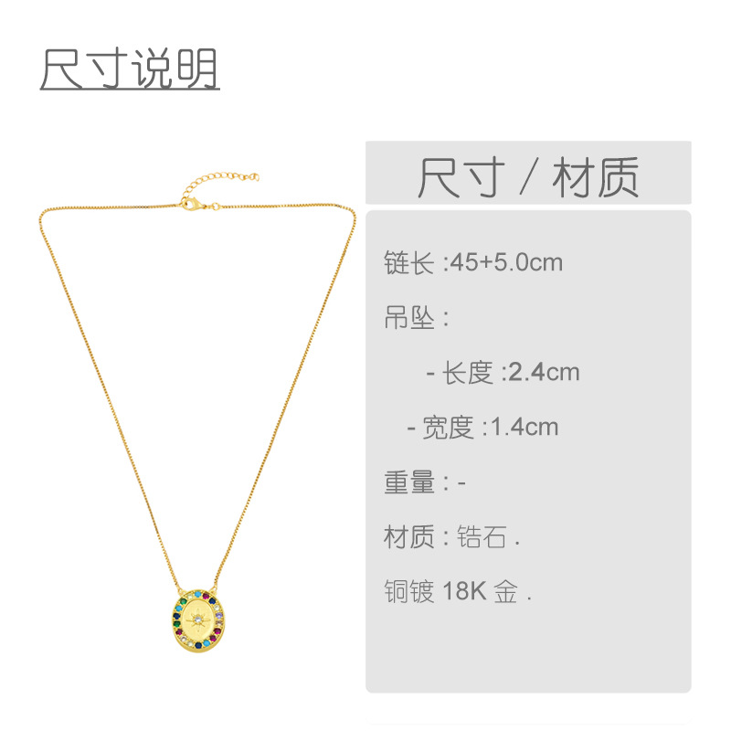 2024 European and American new jewelry colored diamond 18K gold geometric oval star moon lightning pendant necklace nky74