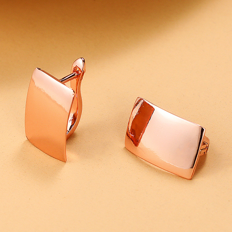 2024 Korean couple temperament earrings shiny smooth rectangular earrings personality rose gold earrings