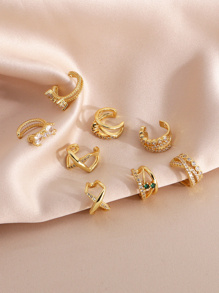 2024 new European and American inlaid zircon earrings for women niche light luxury gold-plated ear bone clips without ear holes erz98