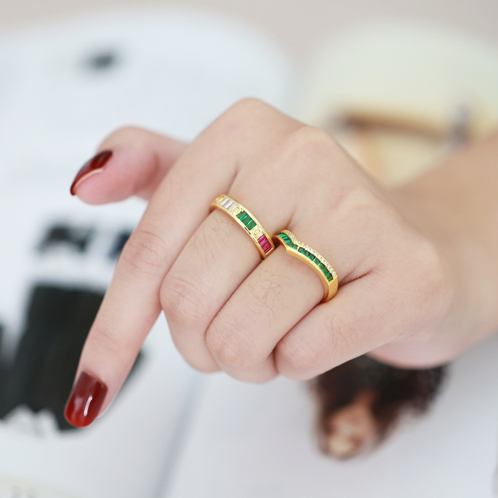 2024 new trendy colored zircon ring female niche design open ring fashion personality ring ris06