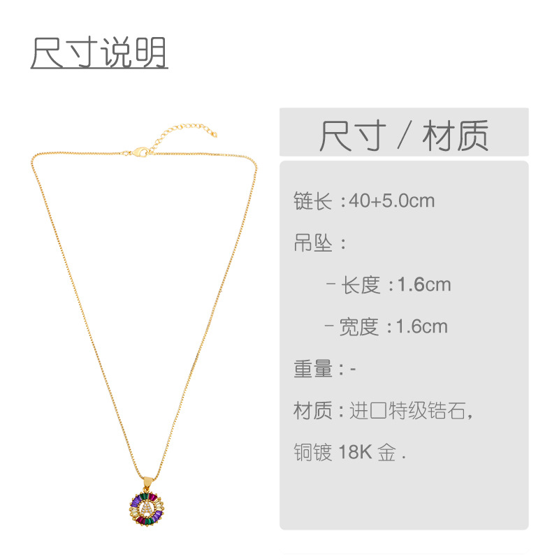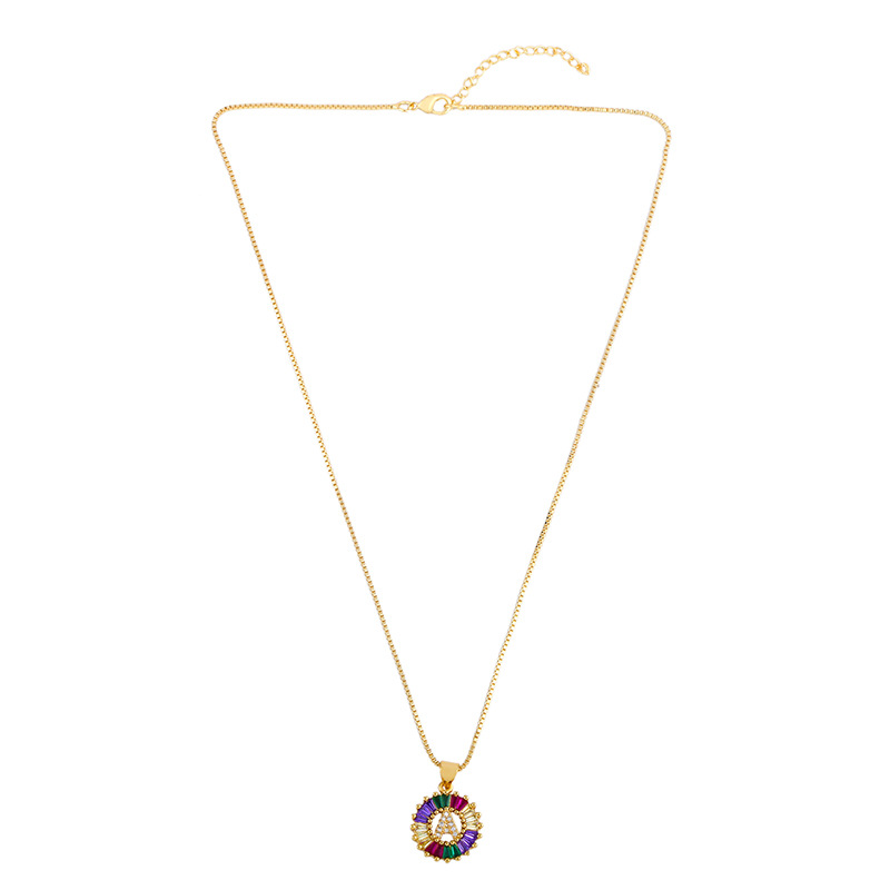 26 English alphabet necklace colored zircon letter round pendant for men and women wholesale nkp34