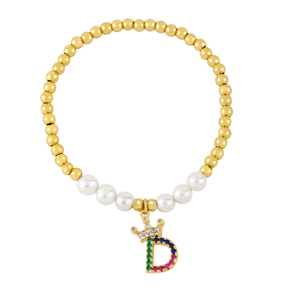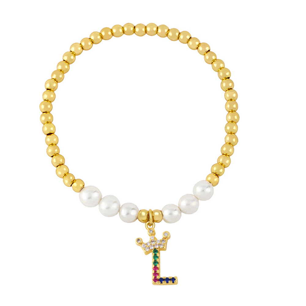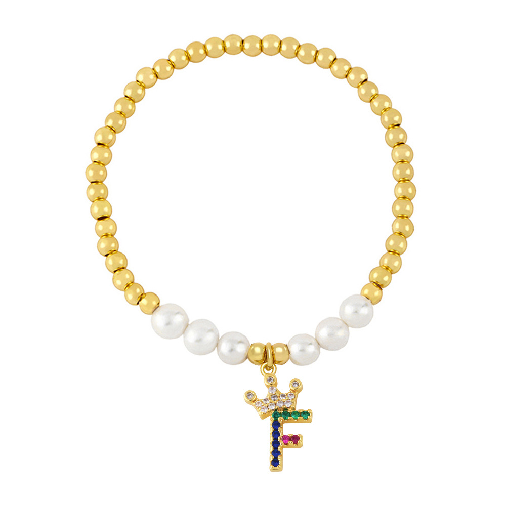 26 English letters bracelet female European and American copper beads pearl elastic bracelet fashion crown letter bracelet brf80