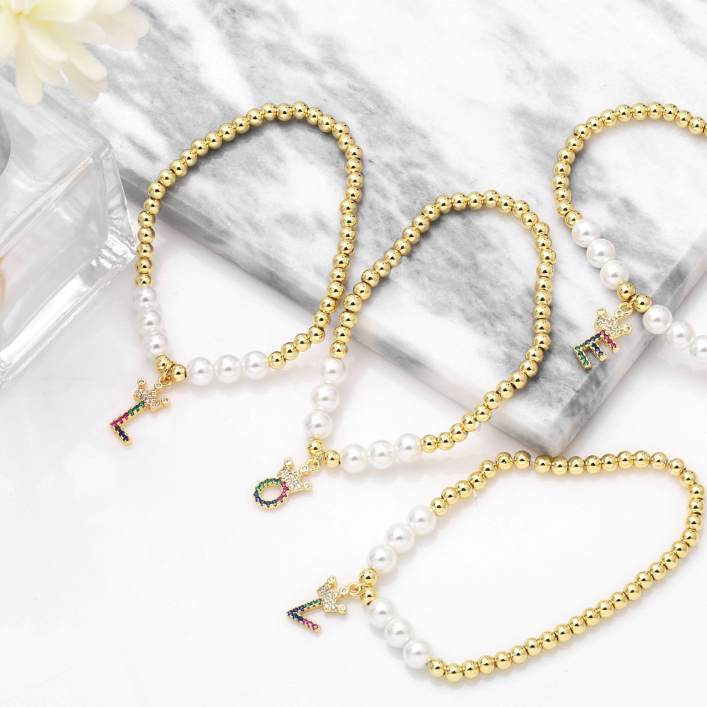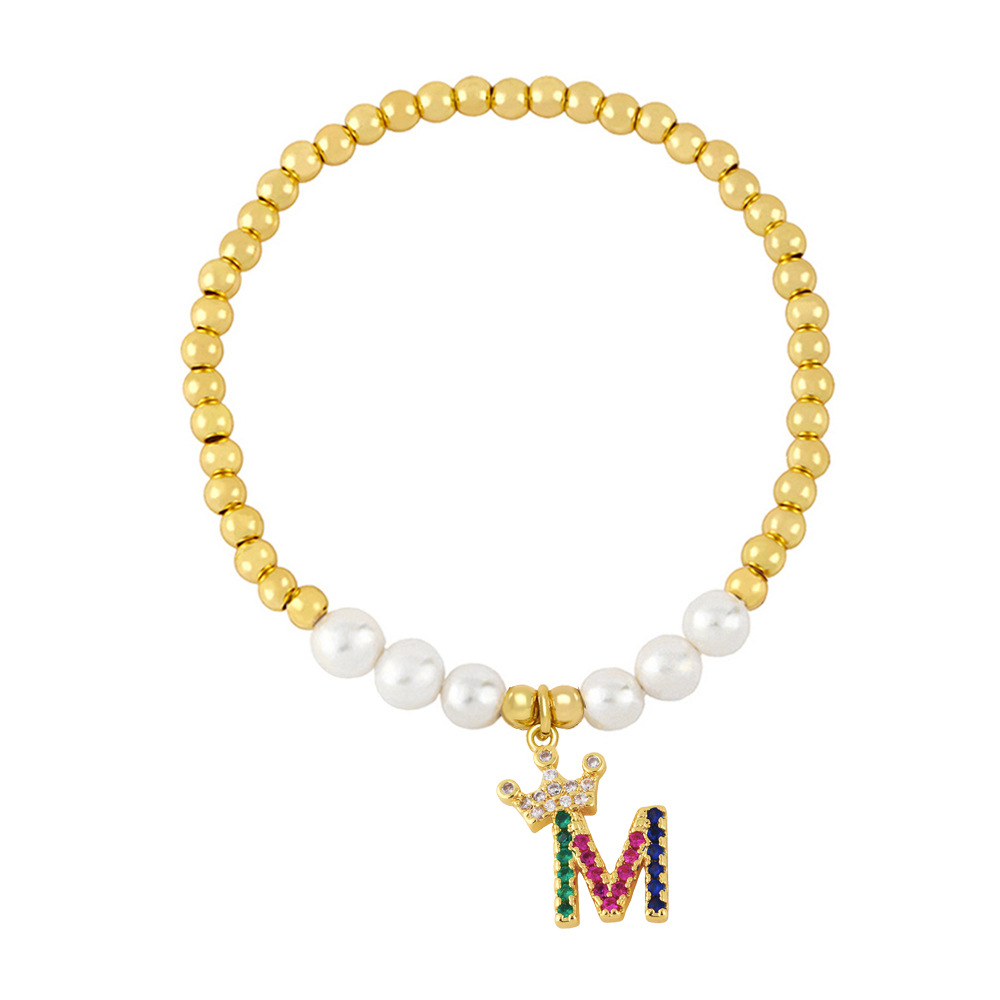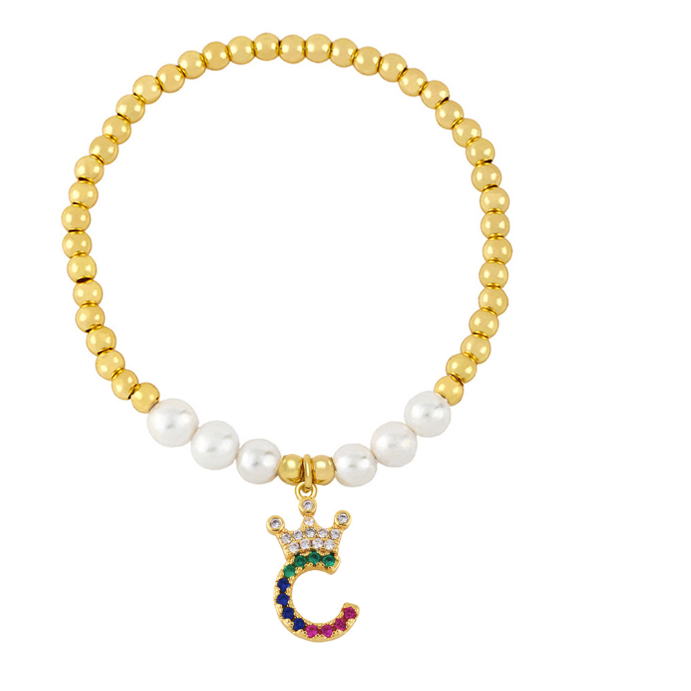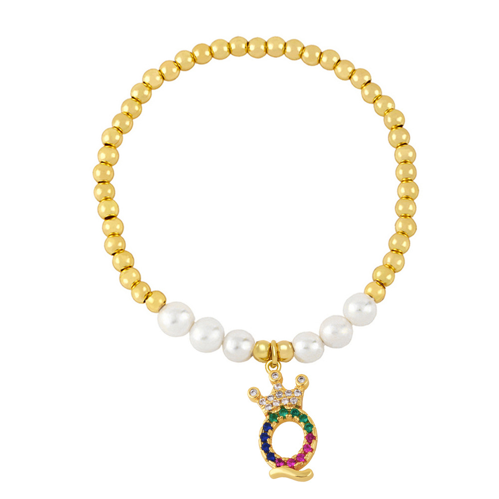 26 English letters bracelet female European and American copper beads pearl elastic bracelet fashion crown letter bracelet brf80