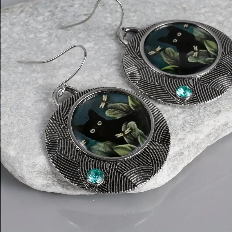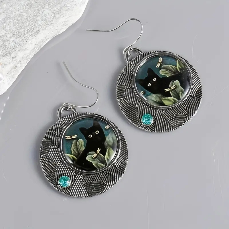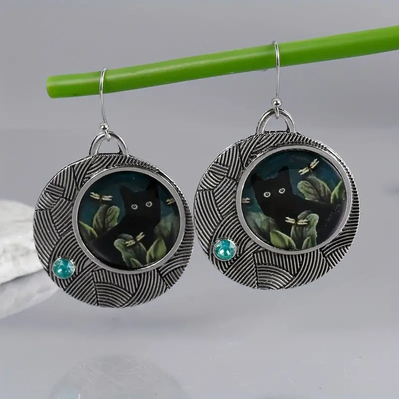Alloy Maillard style earrings, retro literary cat earrings, fashionable and popular ethnic style earrings