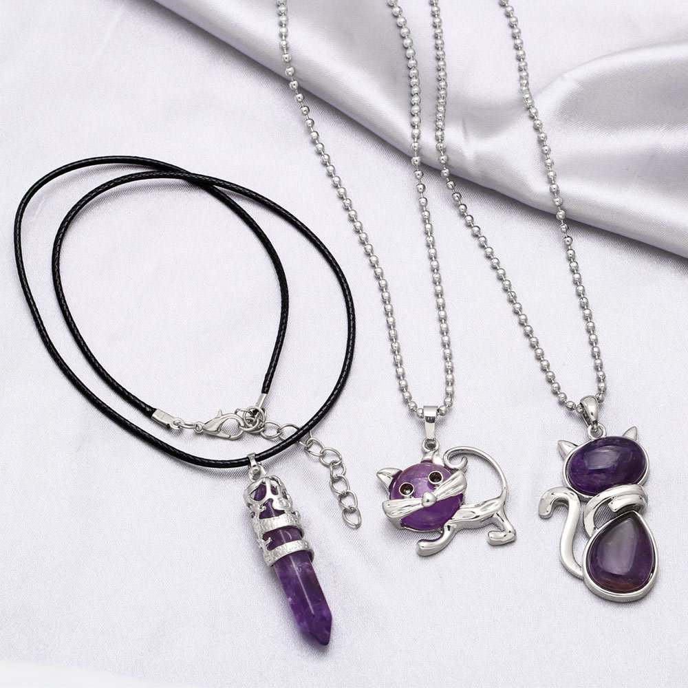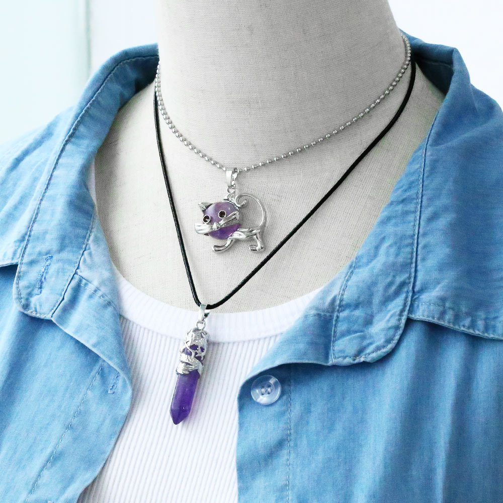 Amethyst cat necklace female simple cute retro kitten pendant versatile clavicle chain jewelry nkb706