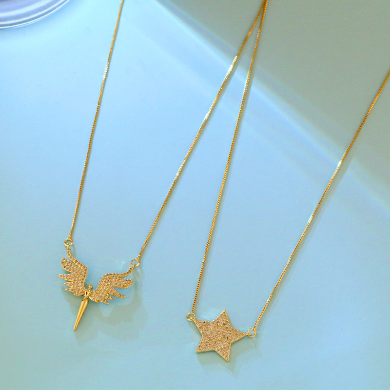 Angel Wings Necklace Hot Sale Zircon Necklace European and American Fashion Pentagram Necklace Female nkv43