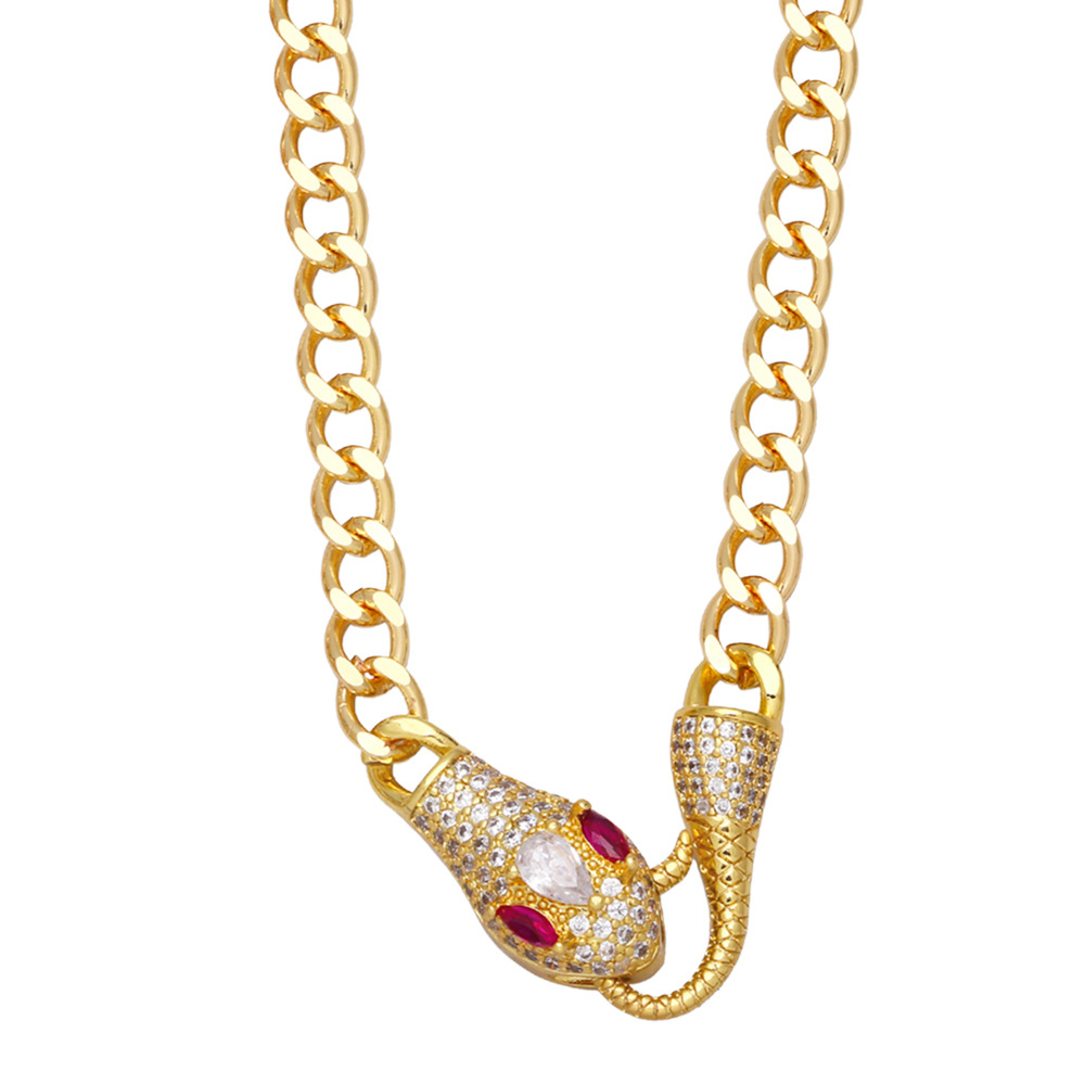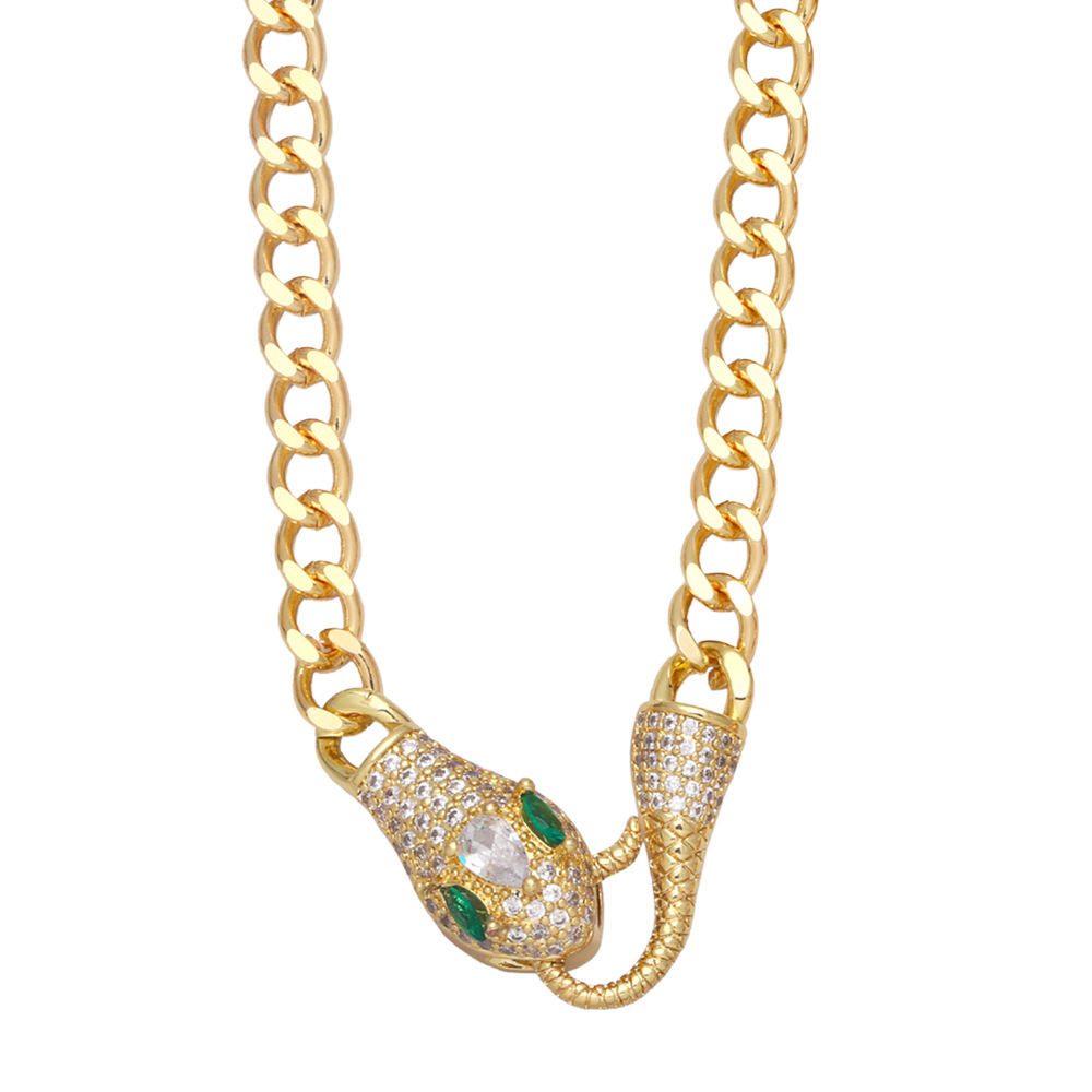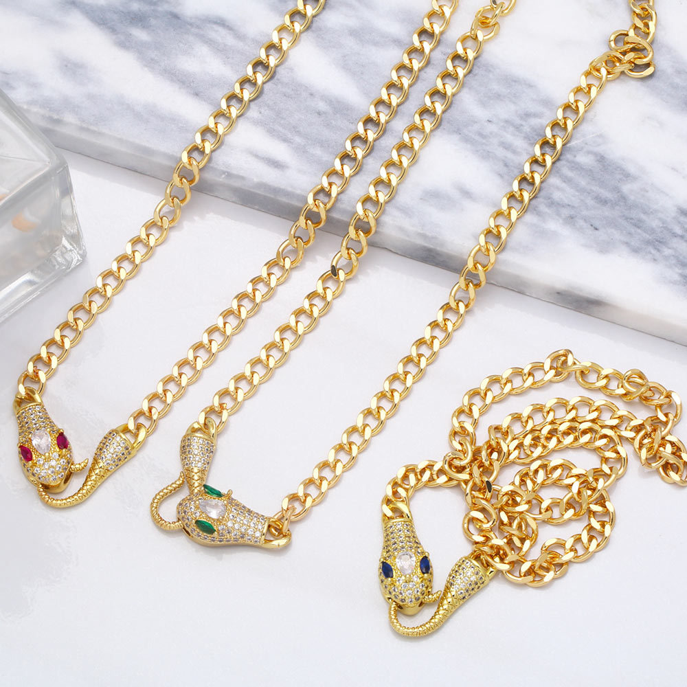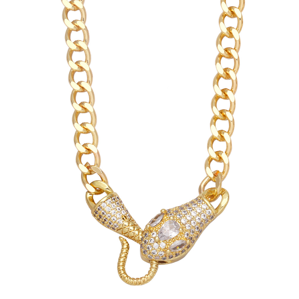 Animal snake necklace Cuban chain European and American exaggerated punk hip-hop snake full diamond unisex necklace nkb053