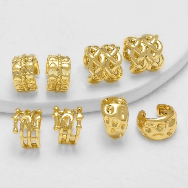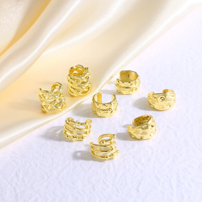 أقراط أذن غير منتظمة مطلية بالنحاس من الذهب عيار 18 قيراطًا، من المجوهرات الأوروبية والأمريكية الأكثر مبيعًا، بدون ثقب للأذن، err38