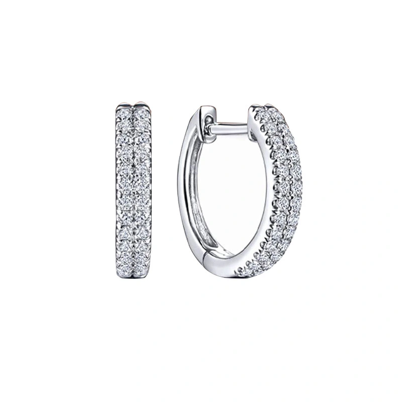 أقراط ألماس دائرية مزدوجة الصف من الطراز الفرنسي الأوروبي والأمريكي مرصعة بالنحاس وأقراط من الزركون وأقراط مستديرة للوجه النحيف للبيع بالجملة