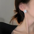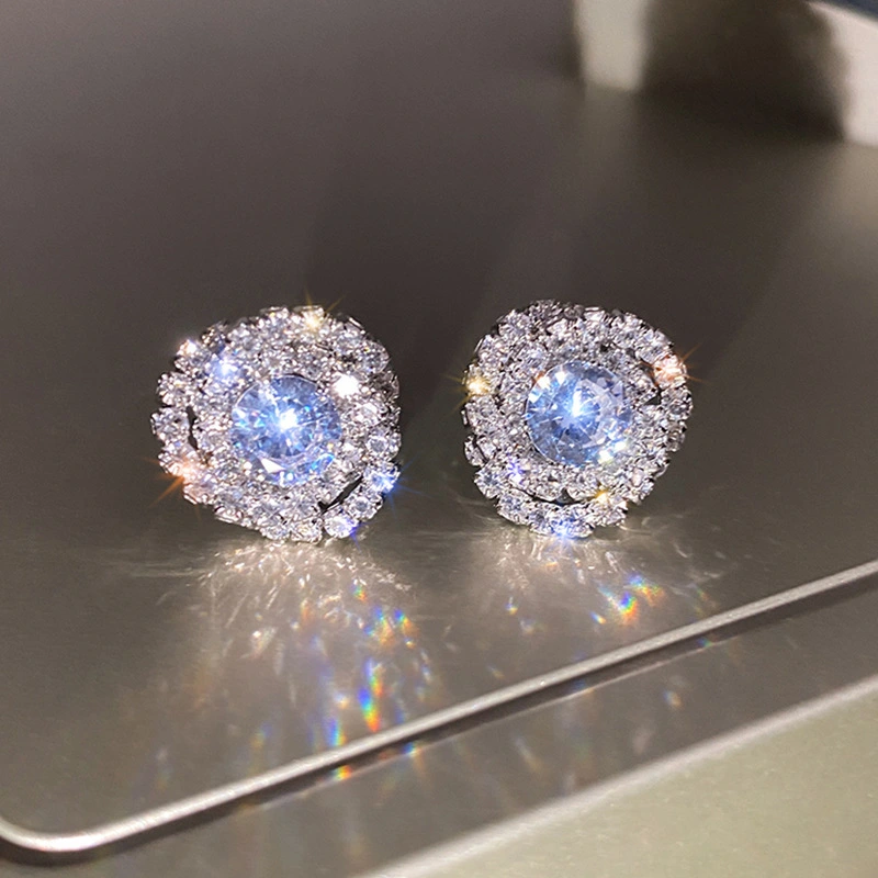أقراط ألماس كاملة ومتلألئة للنساء بتصميم زهرة فريدة من نوعها أقراط وردية خفيفة فاخرة المزاج