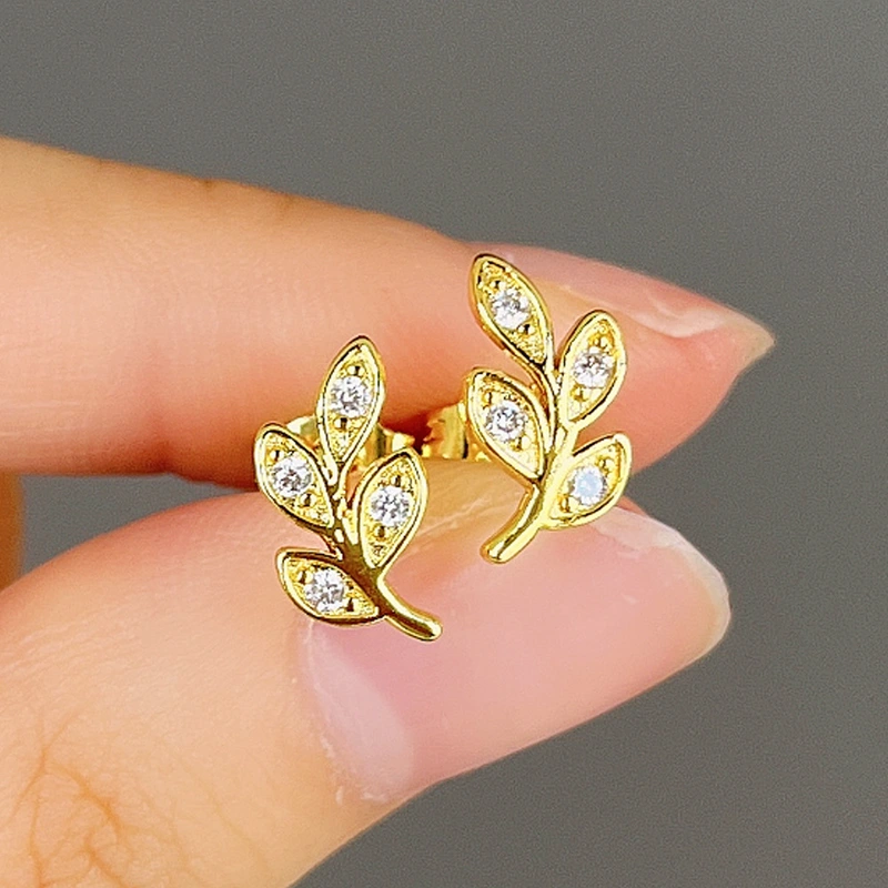 أقراط أوراق الشجر البسيطة على طراز الغابة أقراط أوراق الشجر العصرية الجديدة أقراط غصن الزيتون الصغيرة الطازجة الأدبية للنساء