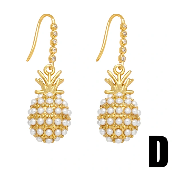 أقراط أوروبية وأمريكية بتخفيضات، أقراط بسيطة على شكل فيونكة من اللؤلؤ، أقراط متعددة الاستخدامات على شكل قفل على شكل أناناس، خطاف للأذن erq94