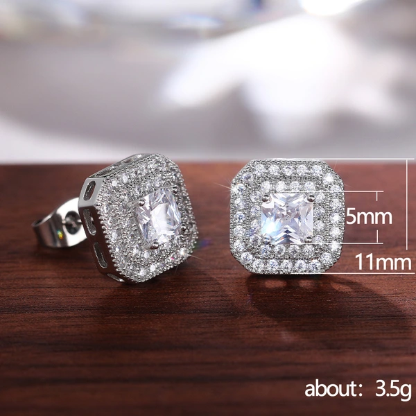 أقراط أوروبية وأمريكية بسيطة أنيقة كلاسيكية للنساء أقراط نحاسية مربعة من الزركون