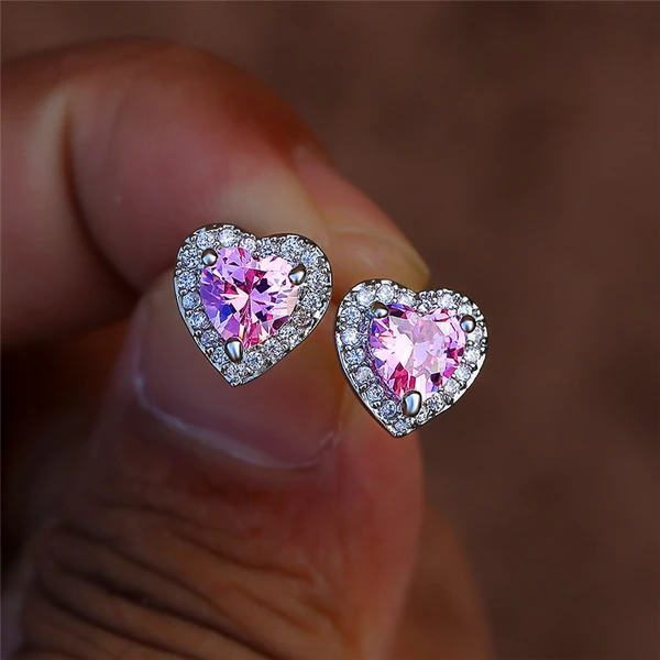 أقراط على شكل قلب من الزركون المكسور، أقراط بتصميم فاخر وخفيف الوزن، أقراط على شكل قلب ذات طابع شخصي