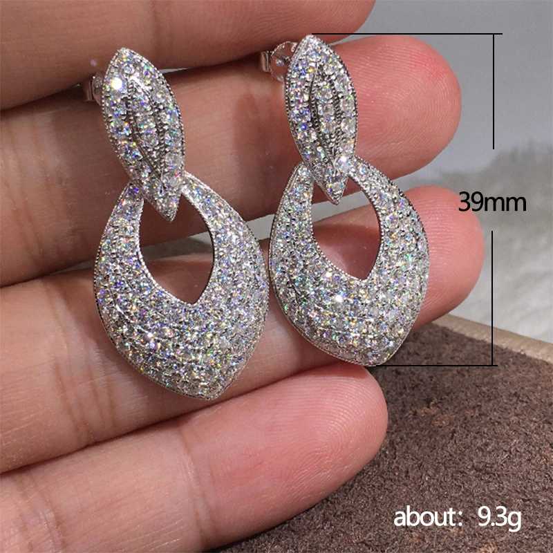 أقراط أوروبية وأمريكية راقية على شكل قطرة ماء مجوفة، أقراط فاخرة مرصعة بالألماس من الزركون، أقراط زفاف رائعة