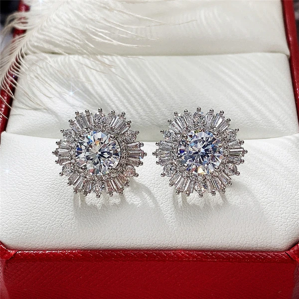 أقراط أوروبية وأمريكية فاخرة جديدة عالية الجودة مرصعة بالألماس بالكامل على شكل ندفة الثلج لحفلات الزفاف وأقراط الزفاف