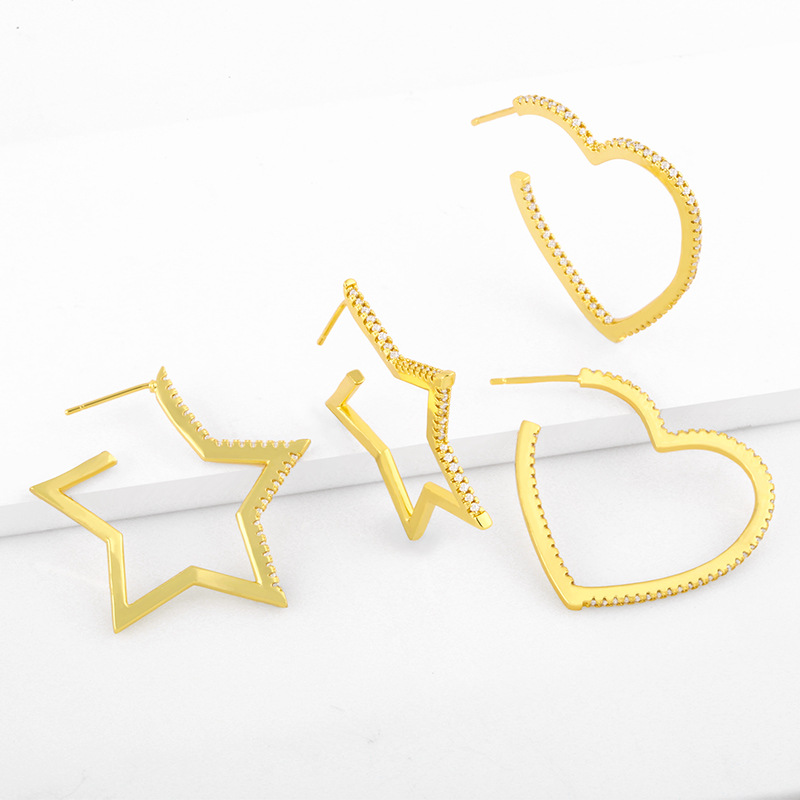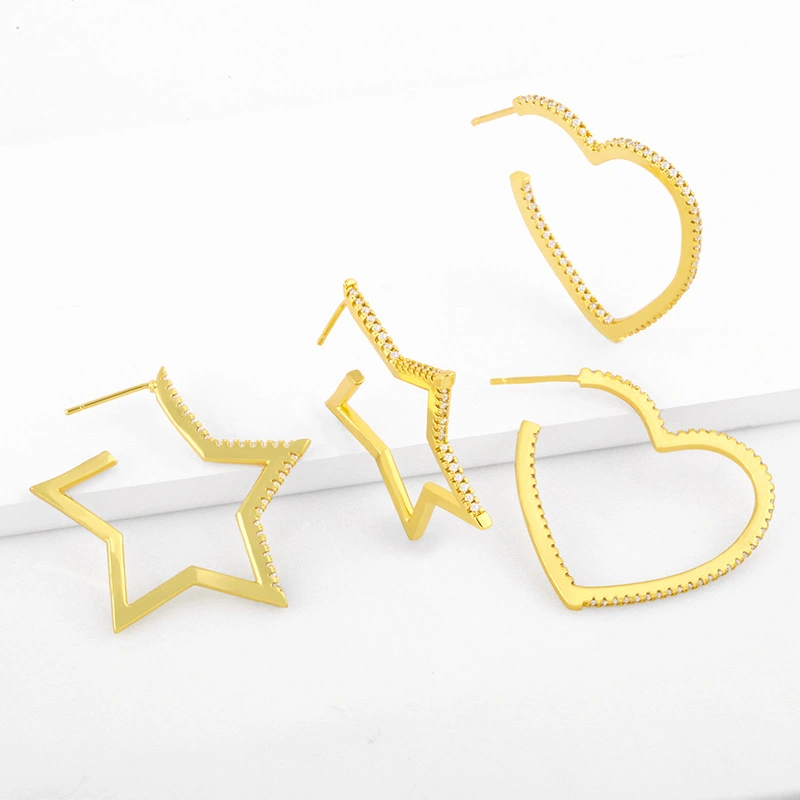 أقراط أوروبية وأمريكية معروضة للبيع بالجملة للنساء أقراط معدنية مجوفة على شكل نجمة خماسية الشكل أقراط كبيرة مبالغ فيها إكسسوارات أقراط erw88