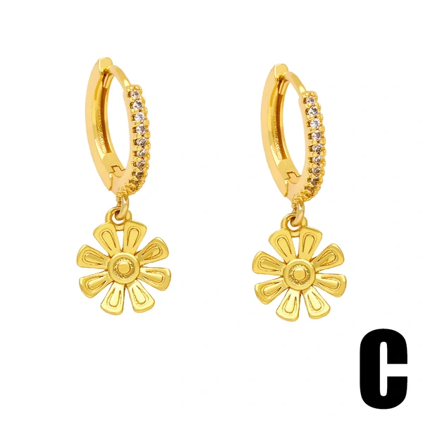 أقراط على شكل قلب يابانية وكورية، أقراط مرصعة بأحجار صغيرة ثنائية اللون على شكل عباد الشمس وعباد الشمس، أقراط بتصميم مجوف أنيق