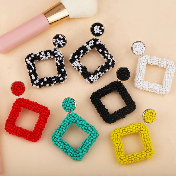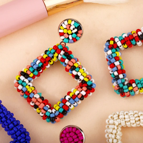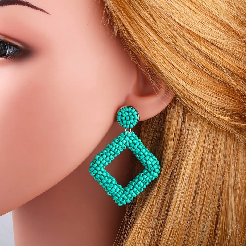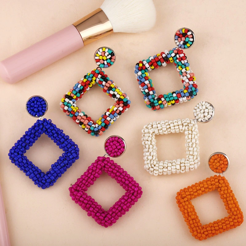 أقراط تصفية 2023 أقراط هندسية أوروبية وأمريكية مصنوعة يدويًا من حبات الأرز الماسية الشخصية بالجملة err49