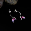 أقراط على شكل قلب يابانية وكورية، أقراط مرصعة بأحجار صغيرة ثنائية اللون على شكل عباد الشمس وعباد الشمس، أقراط بتصميم مجوف أنيق
