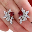أقراط جديدة لعام 2024، أقراط بتصميم زهور متلألئة رائعة على شكل عين حصان، أقراط بسيطة ومتعددة الاستخدامات من الزركون الأحمر