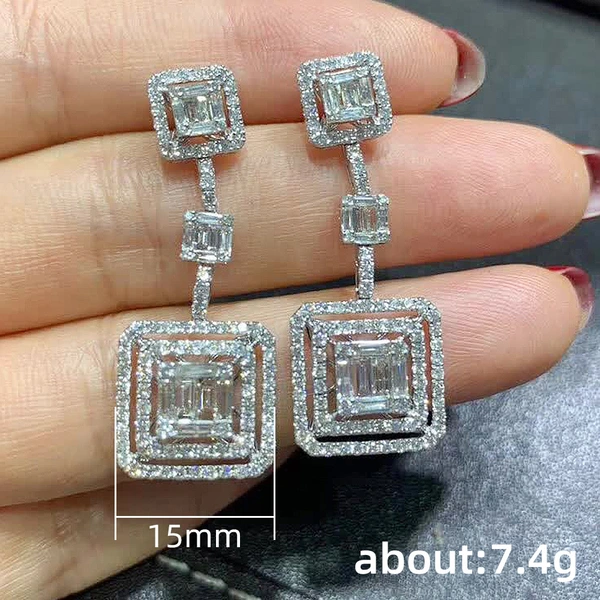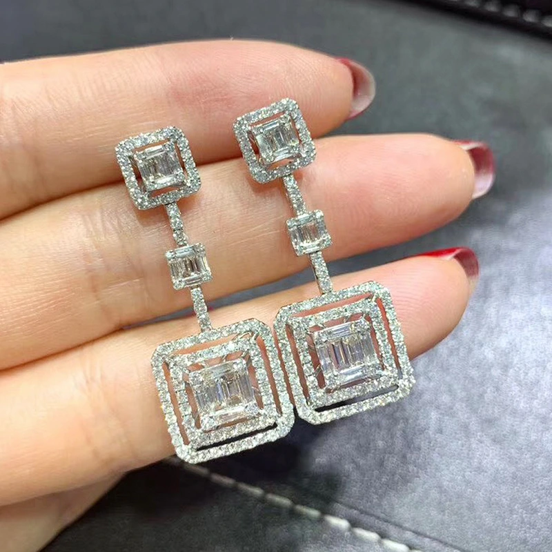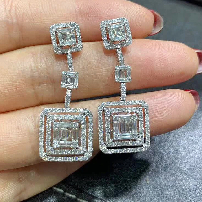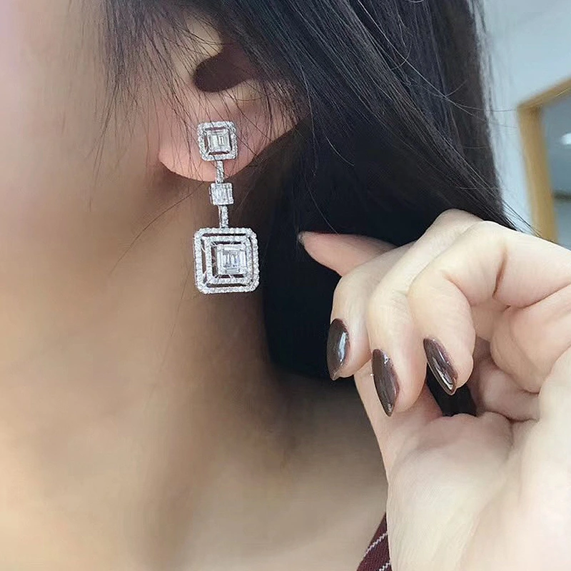 أقراط جديدة من الزركون المرصعة بالجواهر على شكل مربع هندسي شبه منحرف لفصل الخريف والشتاء، أقراط طويلة أنيقة وفاخرة للغاية