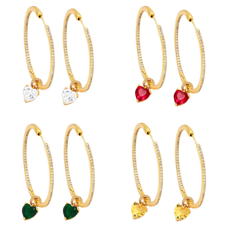أقراط على شكل قلب على الطراز الأوروبي والأمريكي، أقراط نسائية على شكل قلب من الألماس الملون، أقراط على شكل قلب، للبيع بالجملة erq98