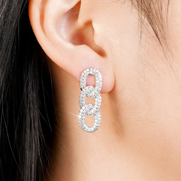 أقراط دائرية هندسية للنساء مع ألماس متعدد الثقوب مرصع بالصليب، أقراط راقية، عصرية وعصرية، أقراط حفلات شعبية